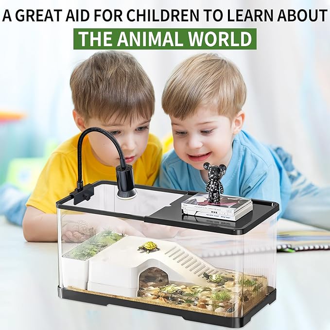 - 【Complete Small Reptile Starter Kit】Includes: 1* tank +1 lid, 1* light +1* UVA/UVB light bulb, 1* filter, 1* sundeck +1* soil culture box, 3* decorative plants +1* stone pack +1*filter ball pack; Including everything you need