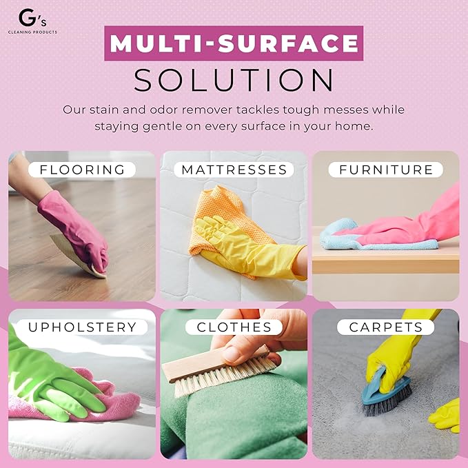 G's Cleaning Biodegradable Stain & Odor Remover Spray – 32 oz Pet Urine Enzyme Cleaner – Pet Odor Eliminator for Home – Cat & Dog Pee Carpet Cleaner – Stain Remover for Rug, Floor, Furniture, Mattress